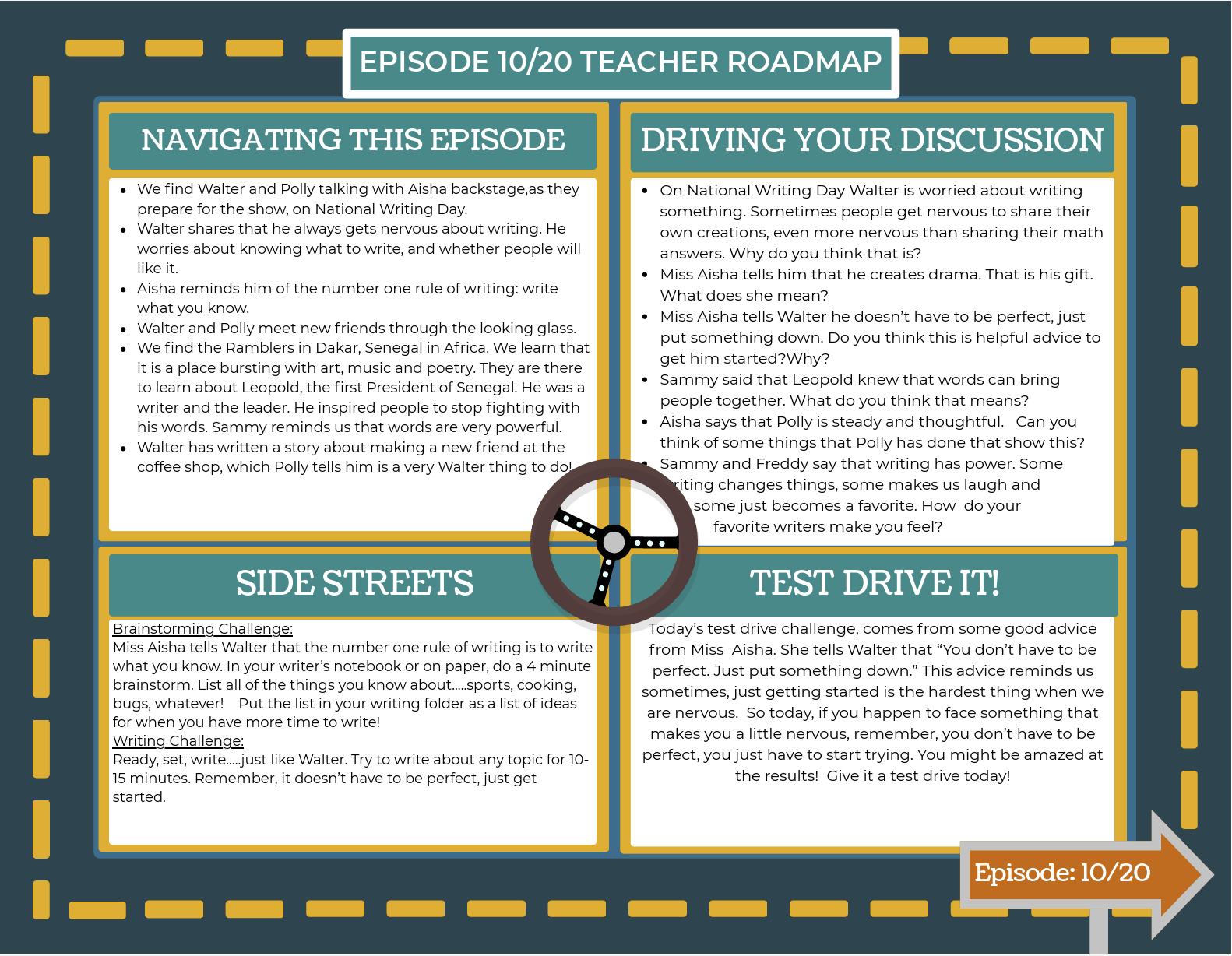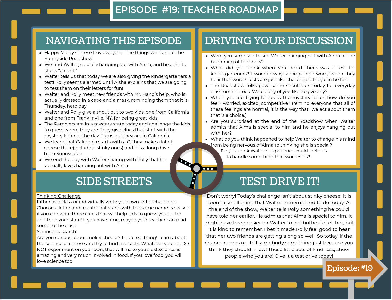 Road Map Key (pdf) Teacher RoadMap: Episode 19 (pdf) Teacher RoadMap: Episode 25 (pdf) Teacher RoadMap:Episode 26 (pdf)